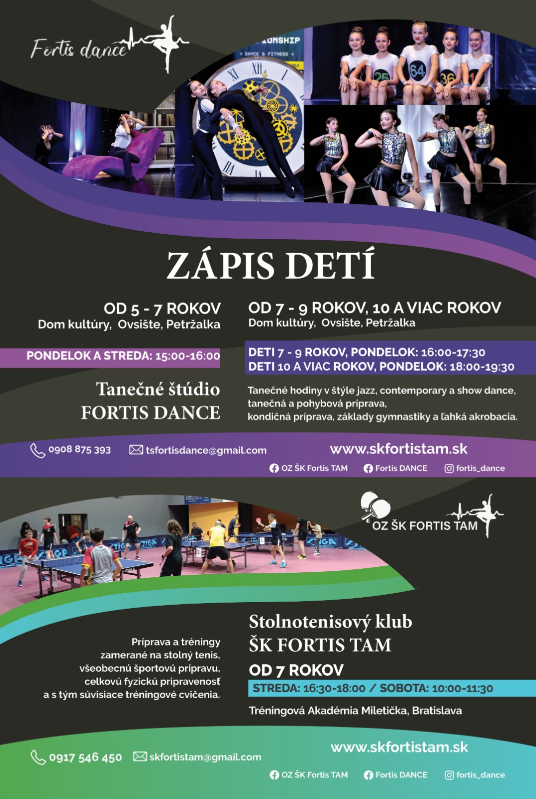 PRÁVE PREBIEHA NÁBOR DETÍ VŠETKÝCH VEKOVÝCH KATEGÓRIÍ DO TANEČNÉHO ŠTÚDIA FORTIS DANCE AJ NA STOLNÝ TENIS :)